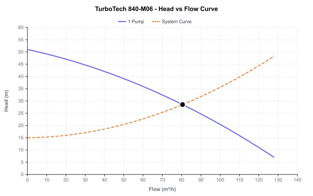 If the operating point sits far from the pump’s best efficiency point (BEP), the installation is either oversized or undersized, wasting energy or failing to meet demand. Calculating the System Curve first is what makes an informed pump selection possible.